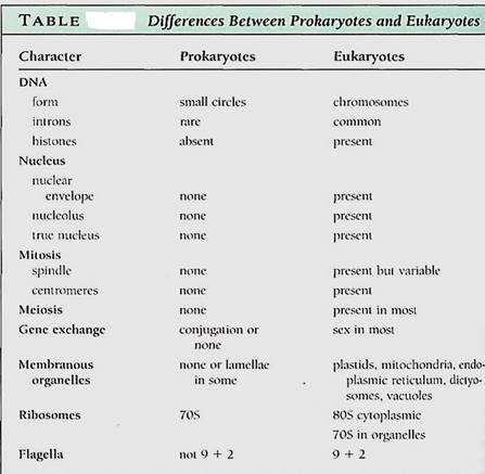 The differences between prokaryotes and eukaryotes are deep-seated, involving many of the most basic metabolic processes and cellular organization (Table ).