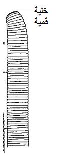 - الخلايا القمية مميزة عن باقي الخلايا حيث تكون مدورة او مدببة النهاية ومغطته بقبعة (Calyptra).