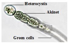 1- خلية الحويصلة المغايرة Heterocystis والتي تكون طرفية (قاعدية) وكروية صغيرة الحجم.
