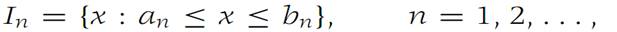 is a sequence of closed intervals such that In+1 ⊂ In for each n .If limn→∞ (bn−an) = 0, then there is one and only one number x0 that is in every In.