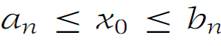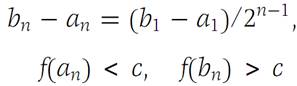 Continuing in this way, either we find a solution in a finite number of steps or we find a sequence {[an,bn]} of closed intervals each of which is one of the two halves of the preceding one, and for which we have(1.1)
