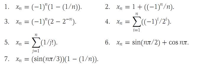 In Problems1 through 7 decide whether or not the given sequence converges to a limit. If it does not, find, in each case, at least one convergent subsequence. We suppose n = 1, 2, 3,...