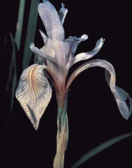 An iris. Angiosperms, or flowering plants, are quite diverse in morphology, growth form, and habitat.