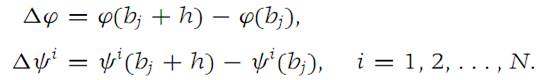 Since each ψi is continuous at bj , it follows that Δψi → 0as h → 0. We apply equation (1.4) from Theorem 1.2 to the function ϕ and use Δψi instead of hi in that equation. We obtain(1.10)