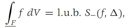 The development of the theory of integration in RN for N ≥ 2 parallels the one-dimensional case given in Section of (The Darboux Integral for Functions on R1). For functions defined on an interval I in R1, we formed upper and lower sums by dividing I into a number of subintervals. In RN we begin with a domain F, i.e., a bounded region that has volume, and in order to form upper and lower sums, we divide F into a number of subdomains. These subdomains are the generalizations of the subinterval in R1, and the limits of the upper and lower sums as the number of subdomainstends to infinity yield upper and lower integrals. The subdomains can be thought of ashypercubesin RN with the volume of each hypercube just N times the length of a side.