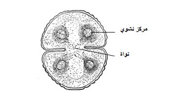 - توجد النواة على جسر سايتوبلازمي وتكون واضحة.