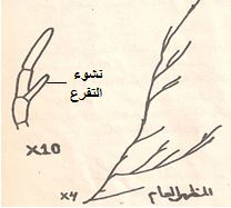 - وتتميز الخلايا الطرفية بوجود بروزات جانبية تتباين في اطوالها ويكون عددها اثتان في كل خلية.