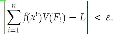 This inequality must hold no matter how the xi are chosen in the Fi . The number L is called the Riemann integral of over , and we use the notation
