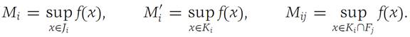 the common refinement of Δ1 and Δ0. Because of the manner in which we chose Δ, each Ji is contained entirely in some F(0)k . Therefore, J1,J2,...,Jn are domains in the refinement Δ/ . The remaining domains of Δ/ are composed of the sets Ki ∩ Fj , i = 1, 2,...,q; j = 1, 2,...,m. We have the inequality