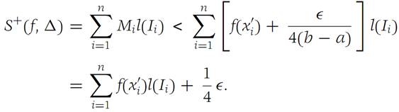 In the definition of Riemann integral, choose Ԑ = 1 and let Δ be a subdivision such that inequality (1.1) holds. We have