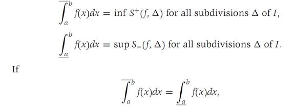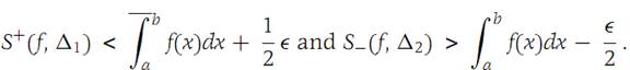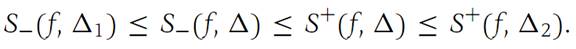 (c) If Δ1 and Δ2 are any two subdivisions of I, thenS−(f,Δ1) ≤ S+(f,Δ2).