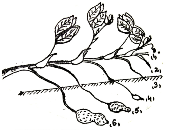 شكل التزهير والمهماز وتكوين القرنات في نبات فستق الحقل الارقام تشير الى مراحل التكوين