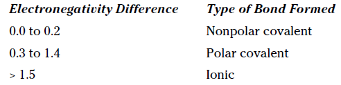 The electronegativity difference provides another way of predicting which kind of bond will form between two elements. Here are some guidelines on whether a bond will be polar or nonpolar, covalent or ionic: