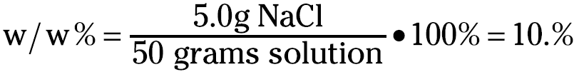 If, for example, you dissolve 5.0 grams of sodium chloride in 45 grams of water, the weight percent is