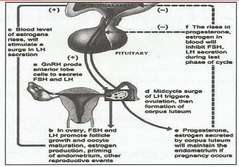 ملحوظة : زيادة مستوى هرمون البروجيستيرون في الدم يؤدي الى نقص مستوى هرمو (LH) .