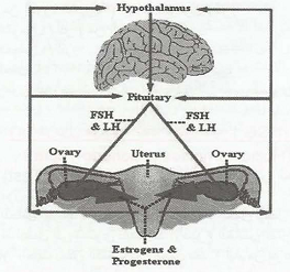 وببلوغ هذا السن (40 – 50 سنة) يرتفع مستوى (LH) و (FSH) مع انخفاض مستوى كل من الاستروجين والبروجسترون ، مما يؤدي في البداية الى اضطرابات في الدورة الشهرية التي تنتهي بتوقفها تماما ، وتصبح السيدة غير قادرة على الانجاب بعد هذا السن .