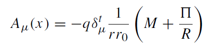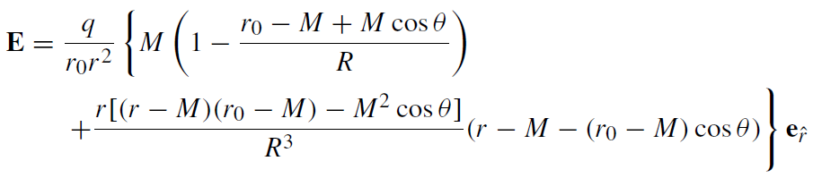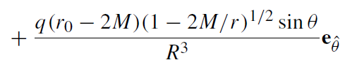 Let a pointlike charge q be at rest near a Schwarzschild black hole at r = r0, θ = 0. The electric field created by this charge, found and Leaute and Linet [49], reads: