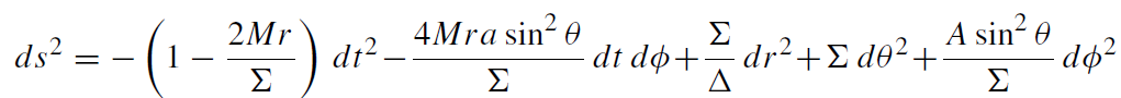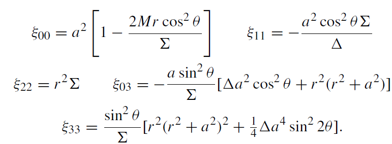 ● Since the component gtφ of the metric does not vanish, the Killing vector field ξ(t) is tilted with respect to the section t = constant. The tilting angle depends on r and θ.