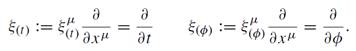 Being stationary (independent of time t) and axisymmetric (independent of an angular coordinate φ) the Kerr metric has two Killing vectors: