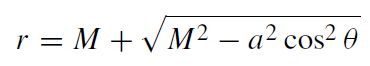 ● The infinite redshift surface lies everywhere outside the event horizon except at the two poles θ = 0 and θ = π. Inside the ergosphere, that is, between the infinite redshift surface and the horizon, the Killing vector field ξ(t) is spacelike, ξ2(t) > 0.