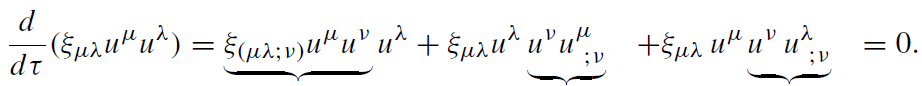 In the same manner as for the Killing vector, one can show that for a geodesic motion the quantity