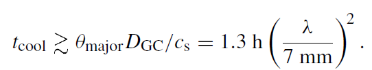 However, the rapid variability of Sgr A* with timescales of 10 minutes (X-rays) to 3 h (15 GHz radio) suggests that time-variable structure may exist on similarly short timescales. We can estimate a scale for adiabatic cooling of a plasma by using equation (1.1), convert to a linear size at the Galactic Center distance DGC = 8 kpc, and divide by the maximal sound speed of a relativistic plasma (photon gas; see, e.g., Konigl 1980) cs = c/√3. We get