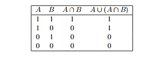 A ∪ (A ∩ B) = A, A ∩ (A ∪ B) = A.