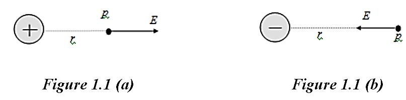 يكون اتجاه المجال عند نقطة ما لشحنة موجبة في اتجاه الخروج من النقطة كما في الشكل1.1(a) ، ويكون اتجاه المجال عند نقطة ما لشحنة سالبة في اتجاه الدخول من النقطة إلى الشحنة كما في الشكل .1.1(b)