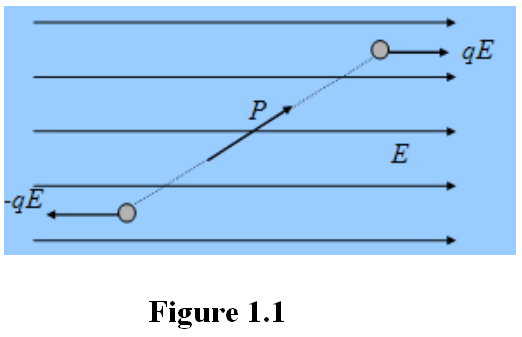 If an electric dipole placed in an external electric field E as shown in figure 1.1, then a torque will act to align it with the direction of the field.