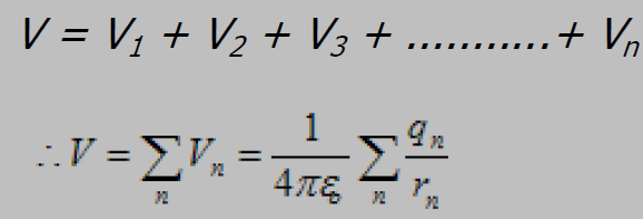يمكن باستخدام هذا القانون إيجاد الجهد الكهربي لنقطة تبعد عن شحنة أو أكثر عن طريق الجمع الجبري عند النقطة المراد إيجاد الجهد الكلى عندها أي للجهد الكهربي الناشئ عن كل شحنة على حده