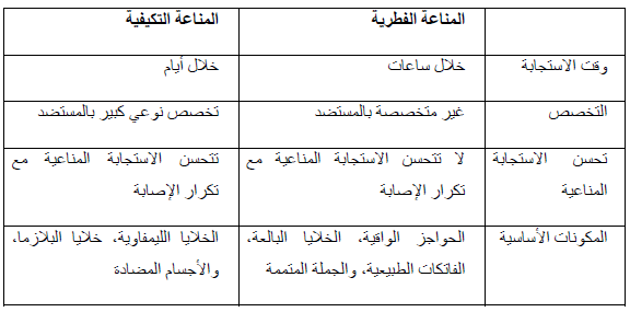 مقارنة بين المناعة الفطرية والتكيفية (المكتسبة)