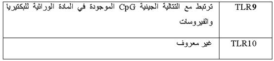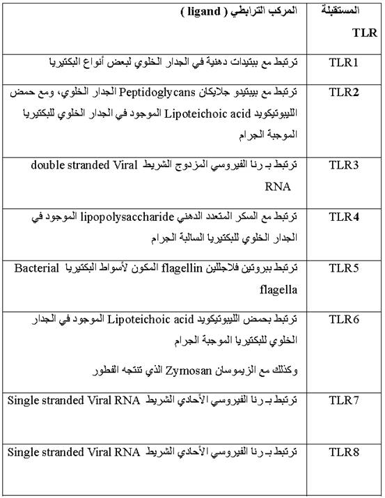الجدول : مستقبلات TLRs ومركباتها الترابطية