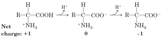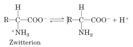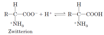 When an amino acid is dissolved in water, it exists in solution as the dipolar ion, or zwitterion (German for “hybrid ion”), shown in Figure 3–9. A zwitterion can act as either an acid (proton donor):