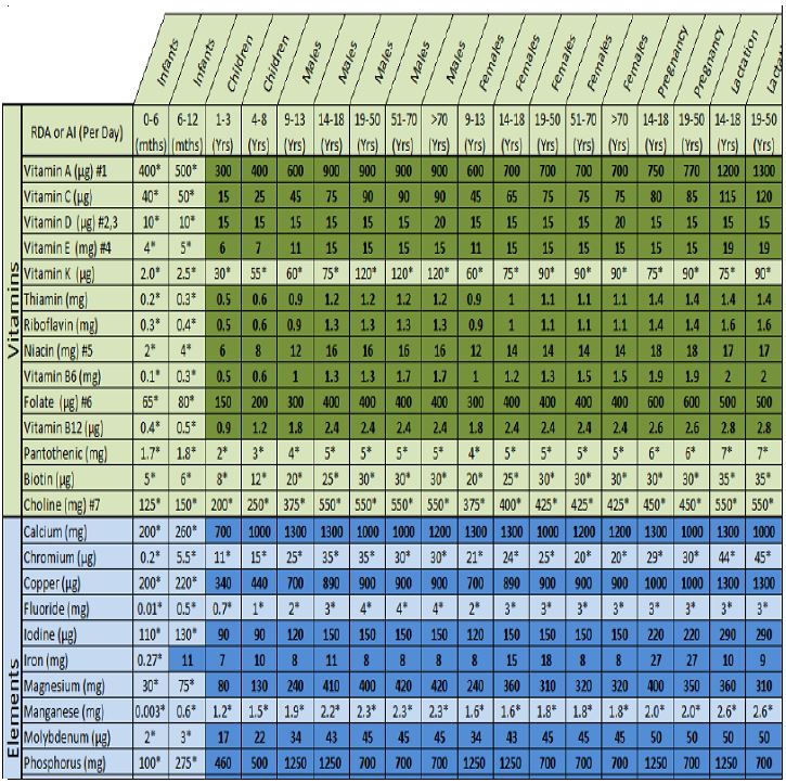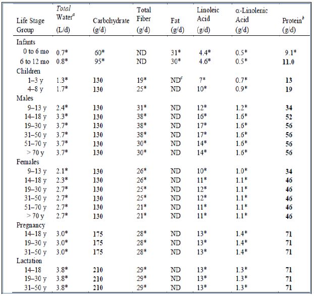 ويمثل معدل كميات الموصى بها للتناول على المدى اليومي التي تحدد بالتجارب باستعمال مجموعة او مجاميع من الاشخاص سليمين التي تكون كافية ، وتستعمل عند عدم توفر امكانية تحديد RDA ومنها الفيتامينات مثل مجموعة B كما موضح في الاتي :