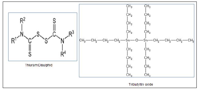 مواد تسمى ايضا تؤثر Algaecide في الطحالب بشكل خاص وتقضي عليها وتستعمل في بعض عمليات معاملة الفضلات عندما تهدف إلى استعمال الأحياء اللاهوائية والتي تتأثر بوجود الطحالب التي تولد الأوكسجين وكذلك تستعمل في برك السباحة ومنها كبريتات النحاس ومركب Dichlone وتستعمل كمضادات لمقاومة تلف الأصباغ خاصة المستعملة في صبغ السفن كما في استعمال المركب Thiuram Disulphide, Tributyltin Oxide الموضح تركيبها في الاتي :