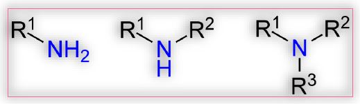 مجموعة من المركبات العضوية التي يتم احلال مجاميع عضوية مكان ذرة هيدروجين أو أكثر من الأمونيا، فالأولية هي التي استبدلت ذرة هيدروجين واحدة مثلCH3NH2) Methylamine) لذلك فهي تحوي على مجموعة أمين فعالة، أما الأمينات الثانوية فهي التي تحوي مجموعتين من المركبات حلت محل ذرتي هيدروجين ، اما الثلاثية فقد أزيلت منها ذرات الهيدروجين الثلاثة مثل Trimethylamine كما موضح في الاتي :