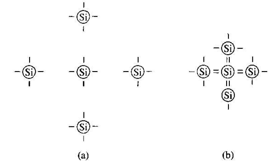 of the covalent bonding in silicon is shown in Figure 1 .2b. The center atom has eight shared valence electrons.