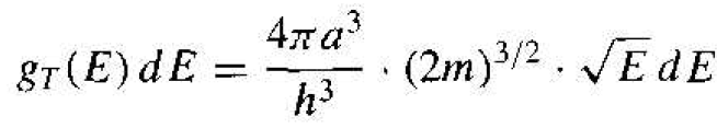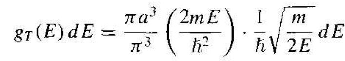 Equation (10) gives the total number of quantum states between the energy E and E + dE in the crystal space volume of a3. If we divide by the volume a3, then we will obtain the density of quantum states per unit volume of the crystal. Equation (10) then becomes