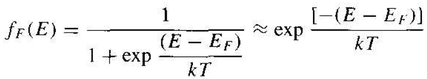 We are assuming that the Fermi energy is within the for hidden-energy bandgap For electrons in the conduction hand, we have E > Ec . If (Ec - EF) >> k T, then (E - EF) >> kT, so that the Fermi probability function reduces to the Boltzmann approximation, which is