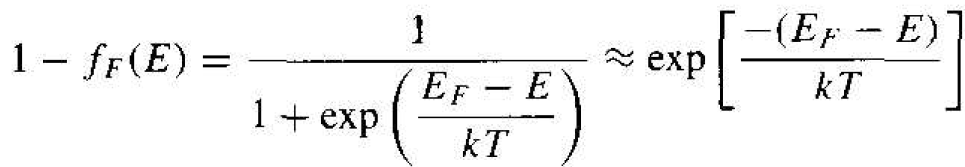 For energy states in the valence band, E < Ev. If (EF – Ev) >> kT (the Fermi function is still assumed to be within the bandgap), then we have a slightly different form of the Boltzmann approximation. Equation (12a) may be written as