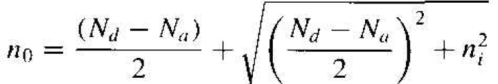 where n0 is given by Equation (1). If we consider an n-type semiconductor in which Nd >> ni, then n0 ≈ Nd, so that