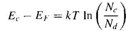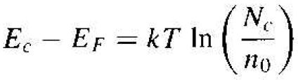 The position of the Fermi energy level within the bandgap can be determined by using the equations already developed for the thermal-equilibrium electron and hole concentrations. If we assume the Boltzmann approximation to be valid, we have n0 = Nc exp[-(Ec – EF)/kT].