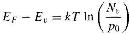 We can derive the same types of equations for a p-type semiconductor. We have p0 = Nv exp [-(EF – Ev)/kT]. so that