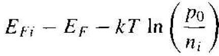 We can also derive an expression for the relationship between the Fermi level and the intrinsic Fermi level in terms of the hole concentration. We have that p0 = ni exp [-(EF - EFi )/kT]. which yields