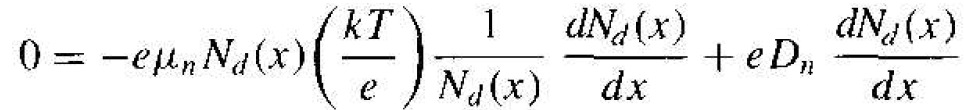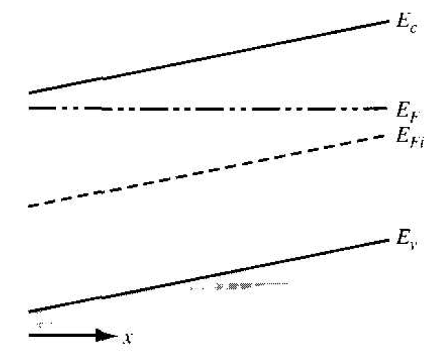 If we consider the non-uniformly doped semiconductor represented by the energy band diagram shown in Figure 1.1 and assume there are no electrical connections that the semiconductor is in thermal equilibrium, then the individual electron as hole currents must be zero. We can write