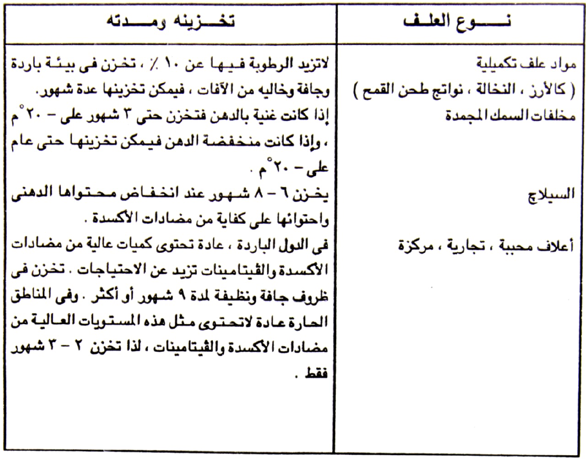 ٢– تخزن الأعلاف في أكياس وبعيدا عن الأرضيات، حتى المحبب من الأعلاف.