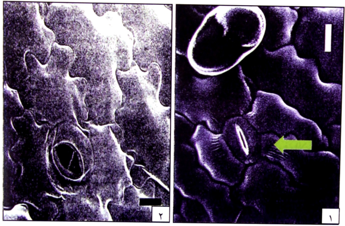 يظهر شكل الثغور الطبيعية (۱) والثغور غير الطبيعية (۲)