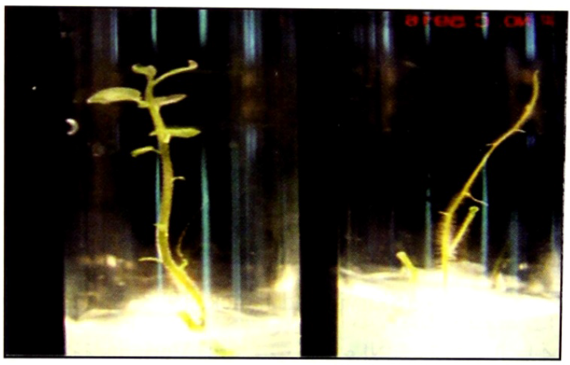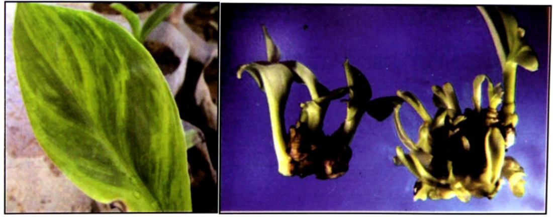 شكل يبين تأثير تراكم غاز الإيثيلين في الأنبوب على مظهر وطبيعة نمو نبات البطاطس ويعالج بتوفير التهوية الملائمة أو إضافة مادة Silver thiOSulphate