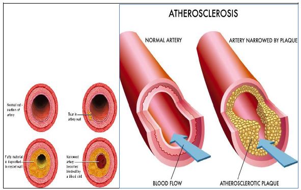احد الامراض الوعائية ويطلق عليه احيانا Arterosclerosis ،وفيه يحصل تثخن وضيق لجدران الشرايين ، والاخير يحصل من زيادة الكوليسترول والدهون وفضلات الخلايا والكاليسيوم والليفين واي مواد تجلط الدم الاخرى ، ويؤدي الى غلق الشرايين مكونا السدادات Atheroma مما يعيق جريان الدم ووصوله الى الاماكن الحساسة ويمكن ان يؤدي الى امراض القلب الوعائية .