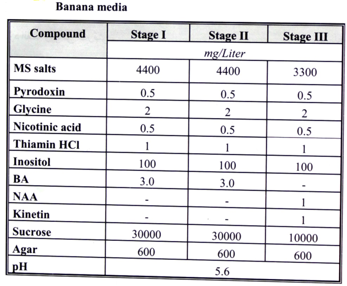 ويلاحظ في نباتات الموز وضع خطة الإكثار الدقيق مرتبط بموسم الزراعة حيث يزرع الموز في مارس وأبريل (الزراعة الرئيسة وتمثل حوالي 90 ٪) والعروة الأخرى في يولية وأغسطس وبالتالي فيكون الإكثار بالنسبة للعروة الرئيسة يبدأ من شهر يولية – سبتمبر لبداية مراحل الإكثار حتى يكون الإنتاج من معامل زراعة الأنسجة في شهر أغسطس للأقلمة في الصوبات والتي تستغرق شهراً ثم النقل للتربية حتى شهر مارس ويلاحظ خلال هذه الفترة أن تربية النباتات من شهر ديسمبر ويناير وفبراير فترة حرجة في تربية نباتات الموز لانخفاض درجة الحرارة التي توثر بالسلب على نمو النباتات حيث إن درجة الحرارة المثلى لنمو النباتات ٢٧ درجة مئوية وأن نموها يتأثر تأثيرا سيئاً أثناء أقلمتها وتربيتها بحيث لا تقل درجة الحرارة عن ١٨ درجة مئوية ويتطلب هذا تدفئة في الصوبات اثناء فترة الشتاءBondok et al, 1987; Teisson and Cote, 1997) ).